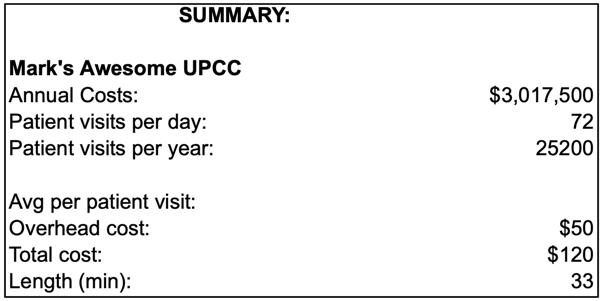 I'm paying more each visit for overhead (facilities, support staff) than FFS doctors would charge in total. And that's before factoring in costs for the doctor or nurse at my UPCC who is seeing the patient. Oops.